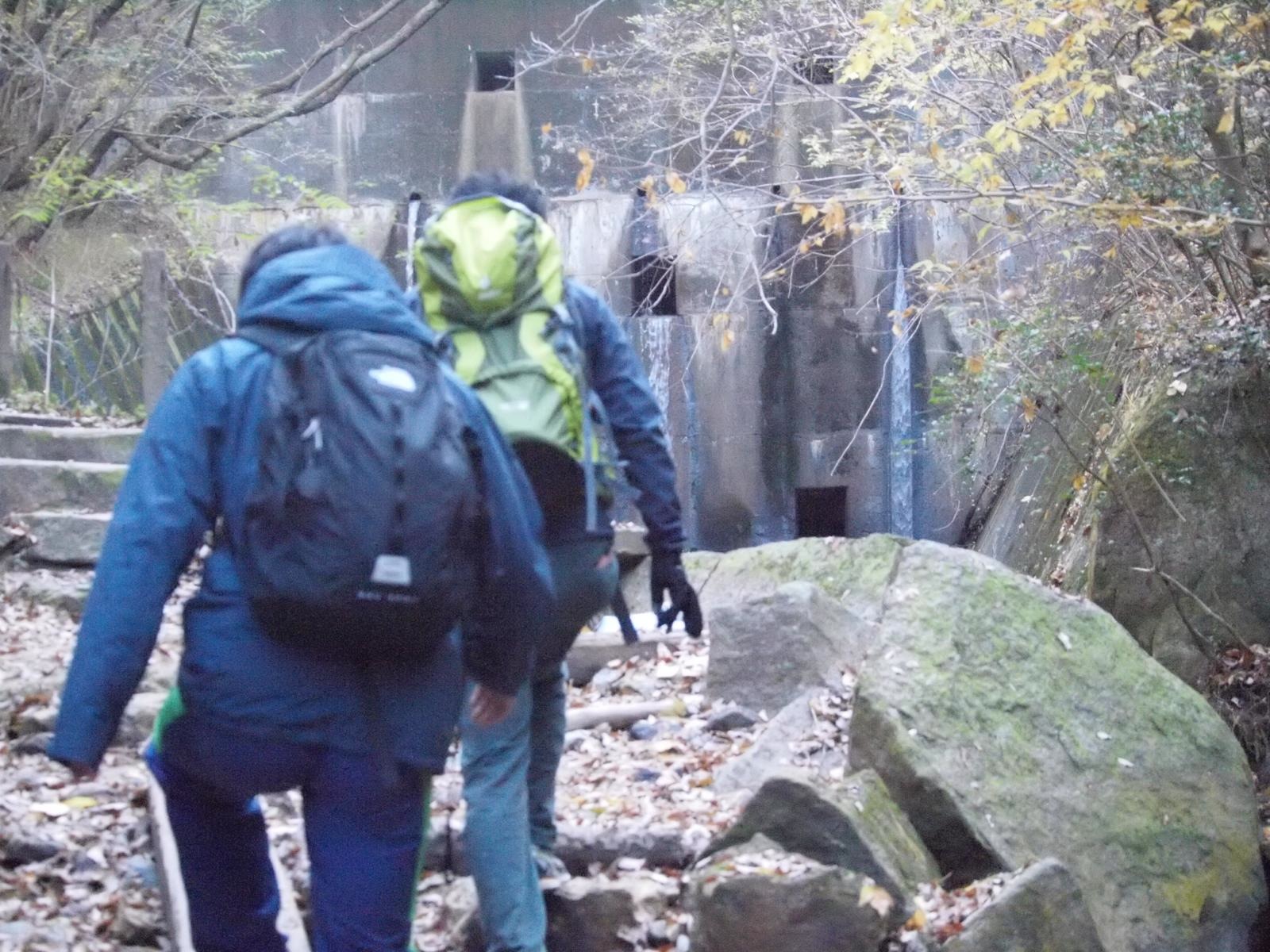 ダムに向かって歩く