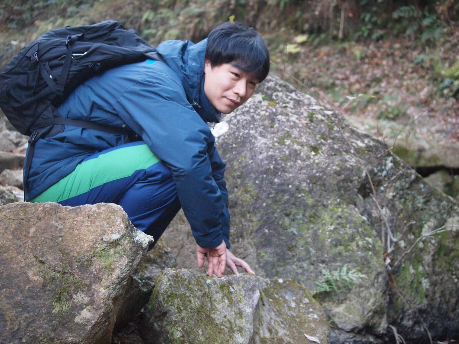 岩場で遊ぶ吉田