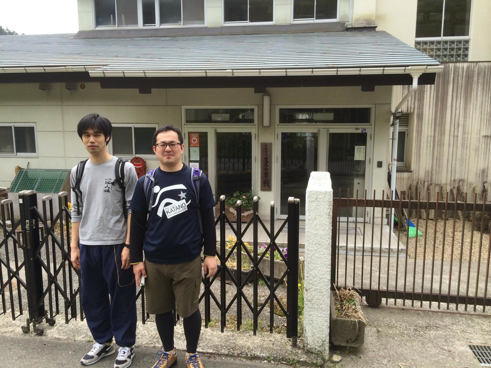 天王小学校前で記念撮影
