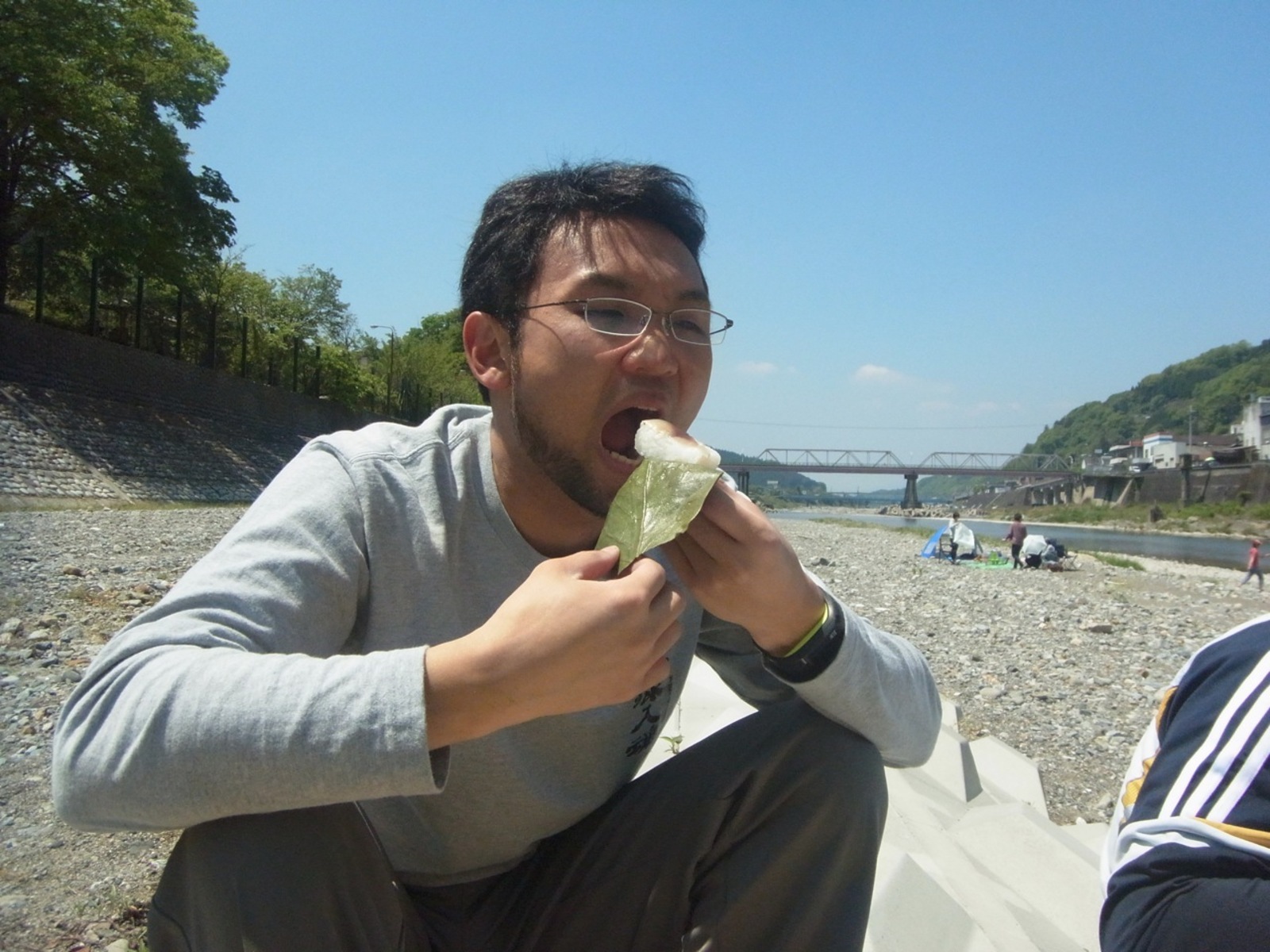 柿の葉寿司を食べようとする稲葉。