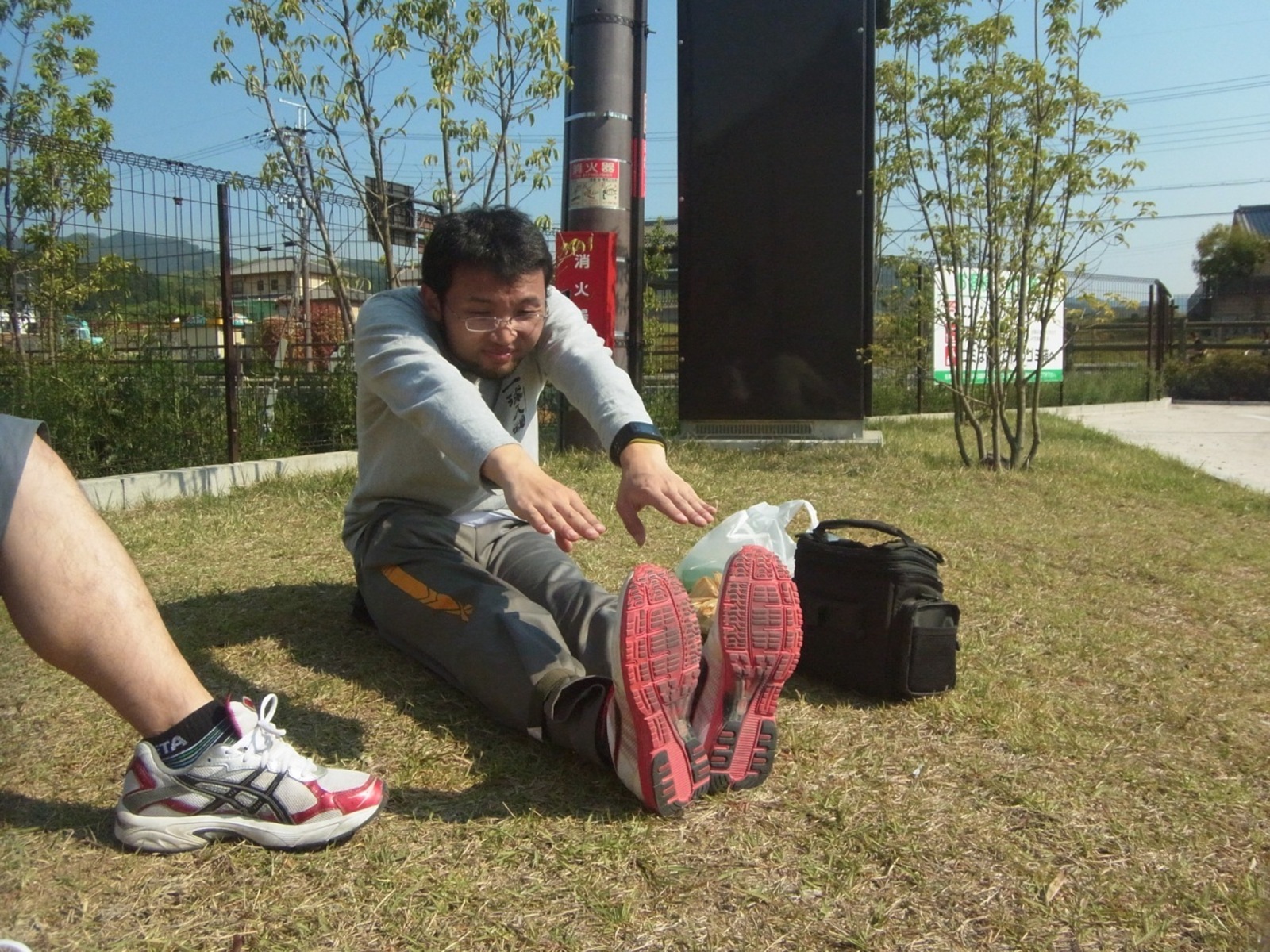 疲労のピークに達した稲葉が硬い体を伸ばします。