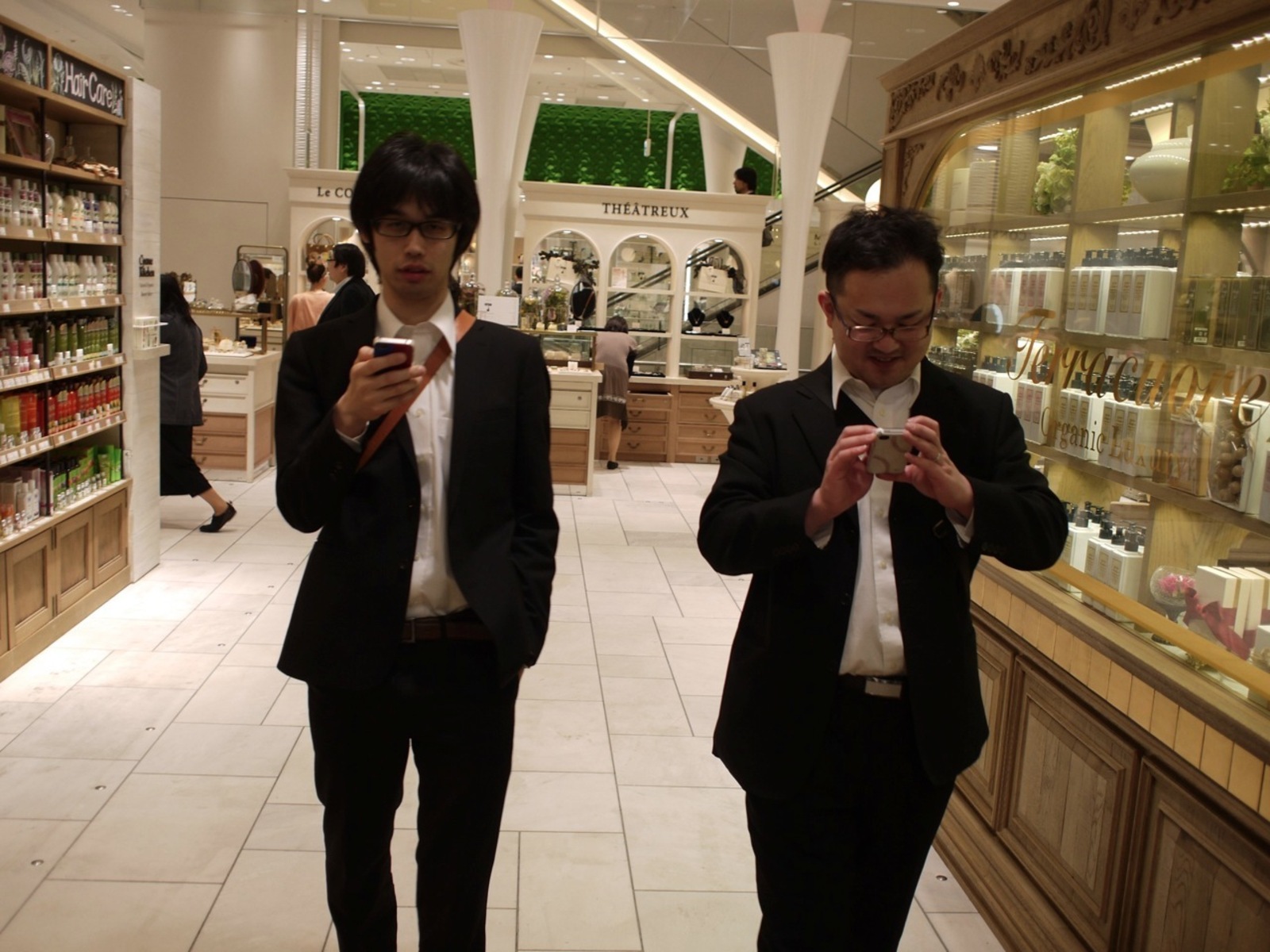 東京のおしゃれスポット、ヒカリエに潜入しました。スマートフォンでチェックイン!