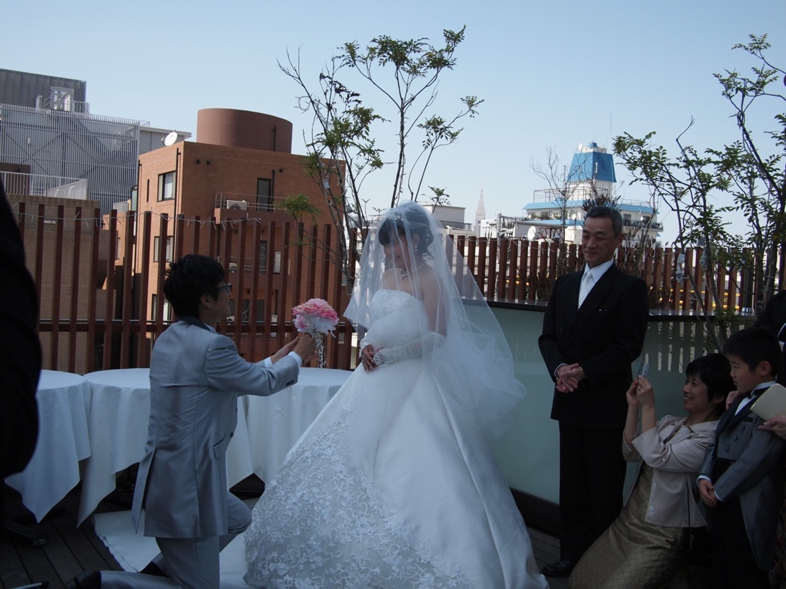山キーから花嫁さんにブーケが手渡されました。いいシーンです。