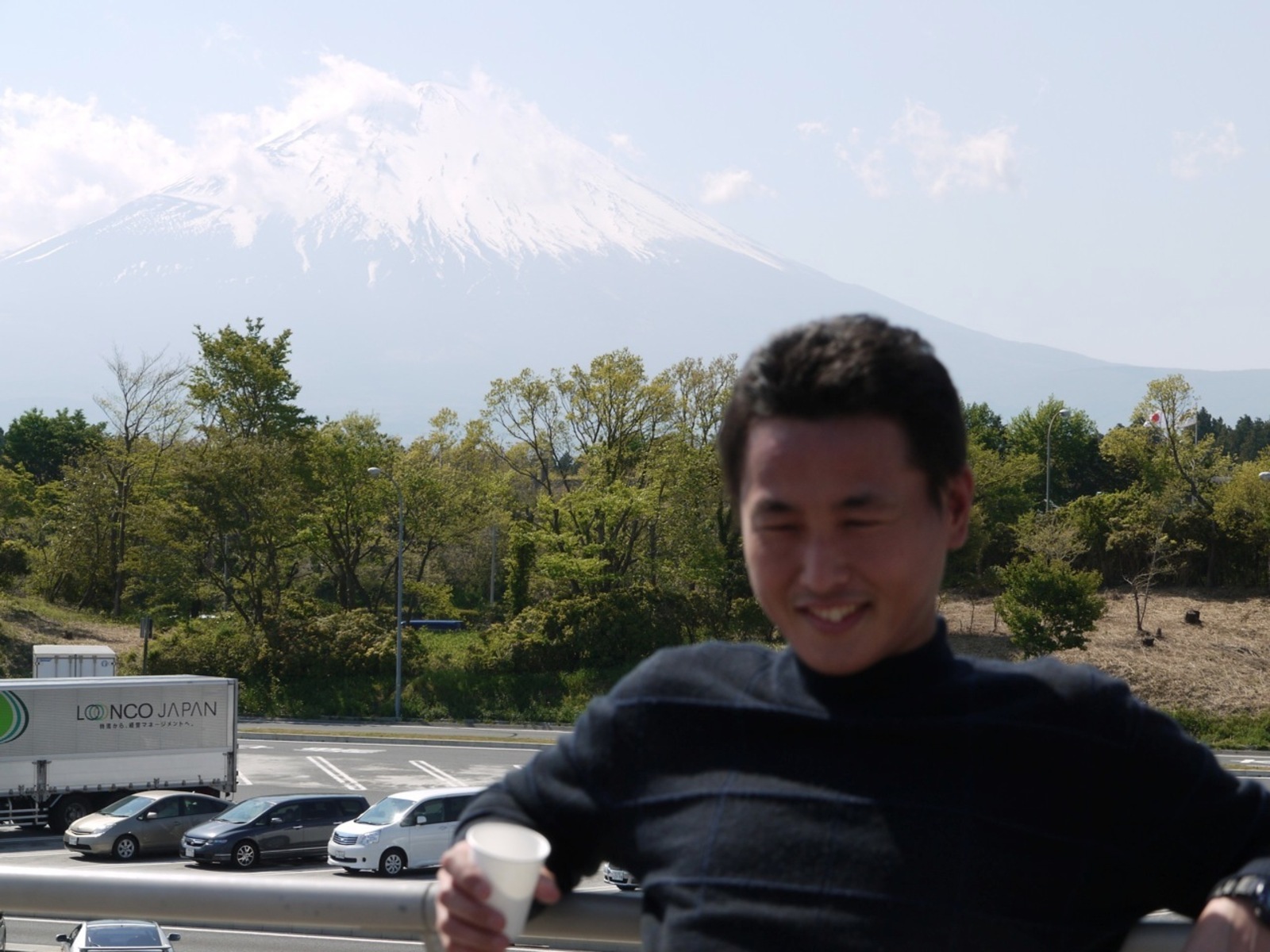前日とは違いダイナミックに見える富士山をバックにしゃぶさんを撮影。