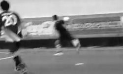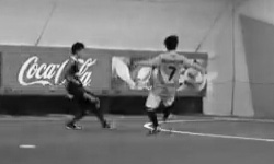 ゲーム最終戦、カウンター攻撃から中西が谷上にパスを送る。走りこんだ谷上がポストに激突しながらも間に合いゴール!