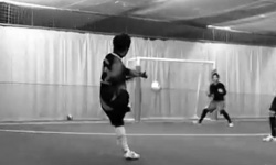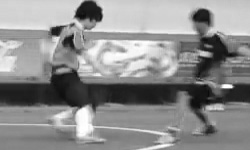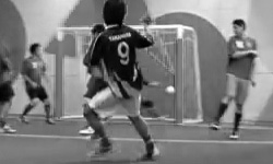高原がコート中央でボールを持ちちょんと浮かす絶妙なパスを中西に送る。パスを受けた中西がダイレクトボレーでゴールを奪う!ゴラッソ!