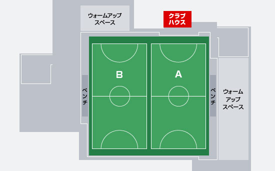 各コート脇には広めのウォーミングアップスペースが有り、ゲームに参加しない人も十分なアップができます。