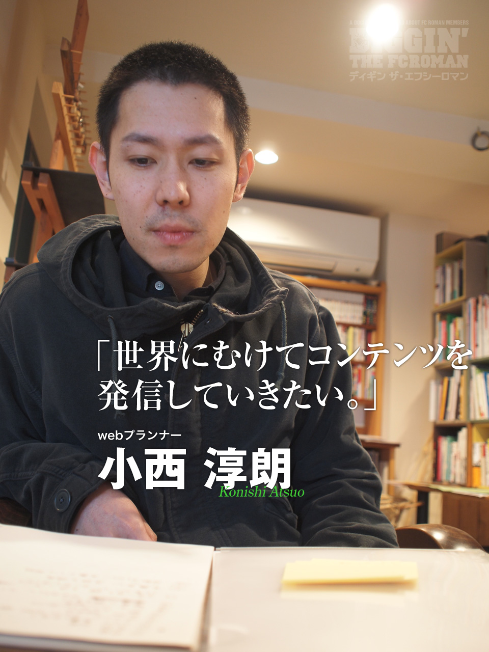 FC ROMAN専属カメラマン、55.KONISHIは普段、IT企業でwebプランナーとして毎日忙しく働く中、世界に発信するコンテンツを日夜構想し続ける。その視線の先には、一体何が見えているのか。頭の中を探ってみたい。