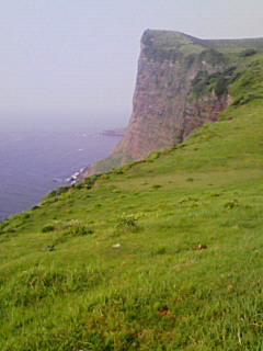 のどかに広がる牧草地が突如、はるか下の海に向かって落下しています。