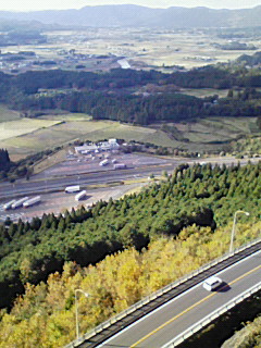 写真はえびの市のループ。(上り)標高を稼ぐ螺旋状の道です。