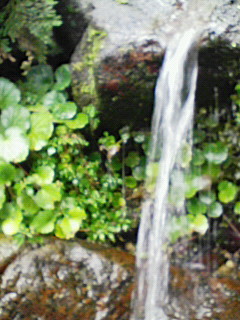 水が湧いて石段よこに落ちてきていて、汲めます。